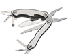 • Featured tools: pliers, wire cutters, flat screwdriver, Phillips screwdriver, small and large straight blades, saw blade, hook remover, bottle opener, and can opener